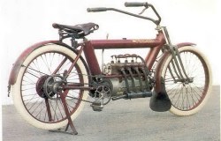America's first four-cylinder motorcycle, the Pierce, was manufactured by the Pierce Arrow Motorcar Company at its factory in Buffalo, New York. Although inspired by the Belgian FN four, one of which Percy Pierce had brought to the USA in 1908, the Pierce differed in detail design, its engine eschewing the FN's atmospheric inlet valves in favour of mechanical sidevalves in T-head configuration. According to its makers the Pierce would be Vibrationless, give motorcar comfort and travel comfortably from a mere walking pace up to the speed of the motorcar. It was not just its multi-cylinder engine that made the Pierce unusual ; the frame too was novel, being constructed from 3.5-diameter steel tubes that housed fuel and oil. Like the FN, final drive was by shaft.